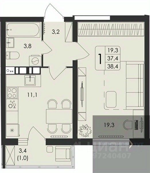 Квартира: 1 к 38,40 кв.м., 7 этаж в комплексе Счастье, 2 очередь, корп.18, сдача: 4кв. , этажей: 7, адрес Ямное село, Проселочная ул., д. 2 к 5, Застройщик: ВЫБОР.