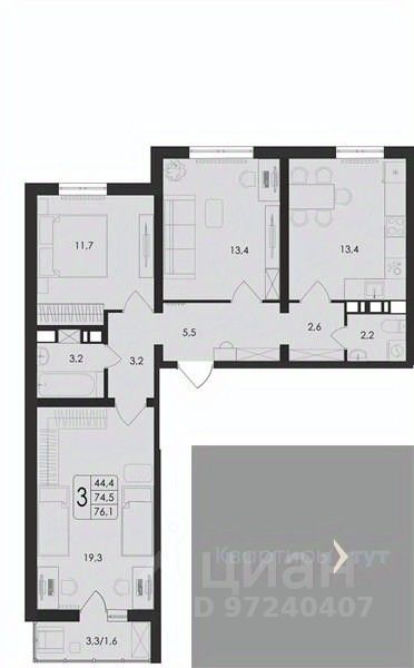 Площадь кухни13,4 м²