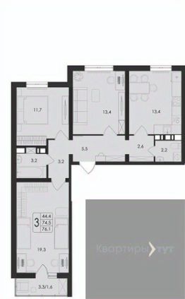 Общая площадь76,1 м²