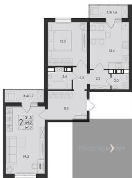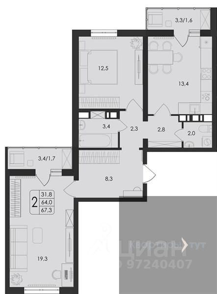 67,3 м²