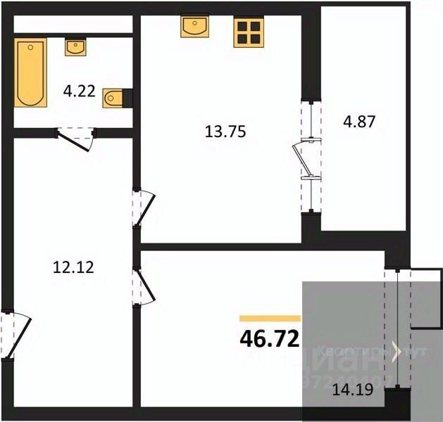 Квартира: 1 к 46,72 кв.м., 6 этаж в комплексе Z-town, 2 очередь, корп.2, сдача: 3кв. , этажей: 21, адрес Воронеж г., Чуева наб., д. 7, Застройщик: Новый код.