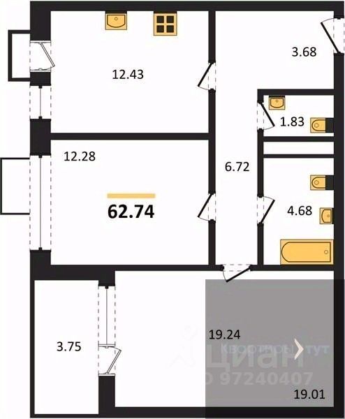 Квартира: 2 к 62,74 кв.м., 3 этаж в комплексе Z-town, 2 очередь, корп.2, сдача: 3кв. , этажей: 21, адрес Воронеж г., Чуева наб., д. 7, Застройщик: Новый код.