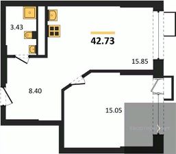 Квартира: 1 к 42,73 кв.м., 3 этаж в комплексе Z-town, 2 очередь, корп.2, сдача: 3кв. , этажей: 21, адрес Воронеж г., Чуева наб., д. 7, Застройщик: Новый код.