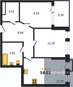 Квартира: 2 к 54,93 кв.м., 3 этаж в комплексе Z-town, 1 очередь, корп.1, сдача: 2кв. , этажей: 21, адрес Воронеж г., Чуева наб., д. 7, Застройщик: Новый код.