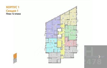 Квартира: 1 к 40,38 кв.м., 12 этаж в комплексе Z-town, 1 очередь, корп.1, сдача: 2кв. , этажей: 21, адрес Воронеж г., Чуева наб., д. 7, Застройщик: Новый код.