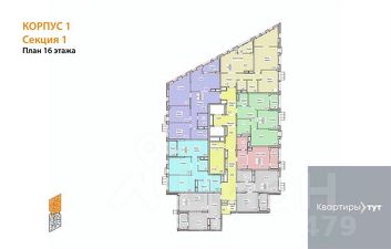 Квартира: 1 к 40,38 кв.м., 16 этаж в комплексе Z-town, 1 очередь, корп.1, сдача: 2кв. , этажей: 21, адрес Воронеж г., Чуева наб., д. 7, Застройщик: Новый код.
