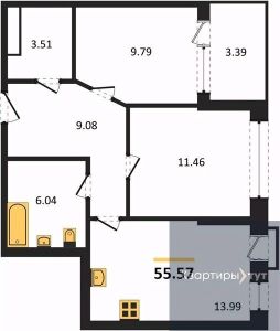 Квартира: 2 к 55,57 кв.м., 18 этаж в комплексе Z-town, 1 очередь, корп.1, сдача: 2кв. , этажей: 21, адрес Воронеж г., Чуева наб., д. 7, Застройщик: Новый код.