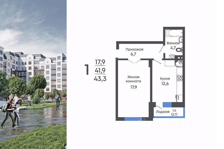 Продаётся 1-комнатная квартира в строящемся доме (Позиция 1), срок сдачи: II-кв. 2026, общей площадью 43.3 кв.м., на 4 этаже. Новый жилой комплекс от Специализированного застройщика "АВА" расположен по адресу: р.п. Рамонь, по ул. Ю. Фучика.