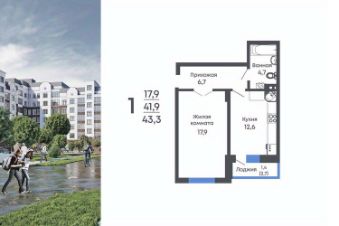 43,3 м²