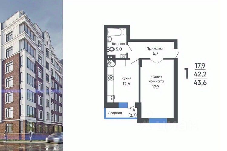 Продаётся 1-комнатная квартира в строящемся доме (Позиция 1), срок сдачи: II-кв. 2026, общей площадью 43.6 кв.м., на 2 этаже. Новый жилой комплекс от Специализированного застройщика "АВА" расположен по адресу: р.п. Рамонь, по ул. Ю. Фучика.