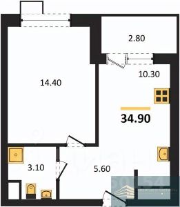 Квартира: 1 к 34,90 кв.м., 10 этаж в комплексе Ритм, 1 очередь, корп.1 (секции 1-2), сдача: 2кв. , этажей: 11, адрес Воронеж г., Содружества бул., д. 6, Застройщик: Инвестжилстрой.