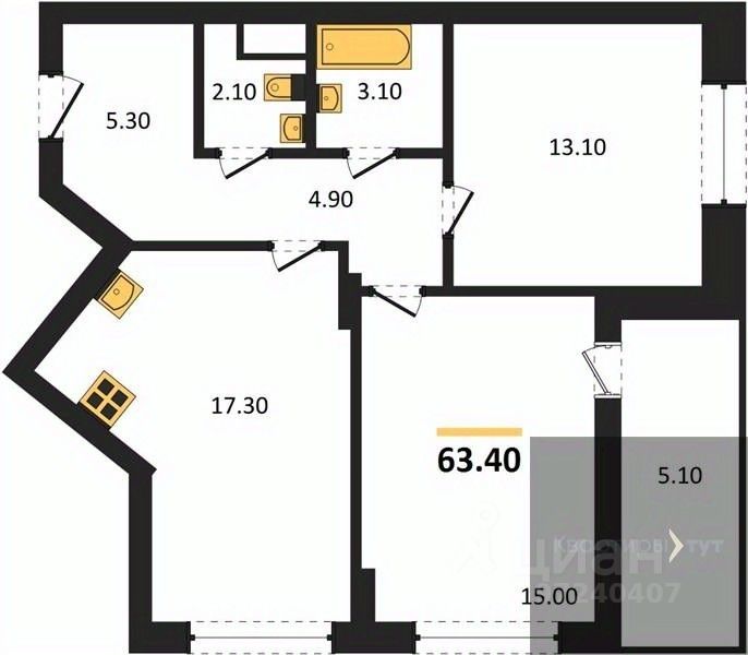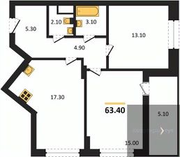 Квартира: 2 к 63,40 кв.м., 17 этаж в комплексе Европейский, 2 очередь, корп.3, сдача: 4кв. , этажей: 24, адрес Воронеж г., Красных партизан ул., д. 35, Застройщик: ДСК.