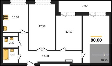 Квартира: 3 к 80,00 кв.м., 21 этаж в комплексе Европейский, 2 очередь, корп.3, сдача: 3кв. , этажей: 24, адрес Воронеж г., Красных партизан ул., д. 35, Застройщик: ДСК.