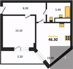 Квартира: 1 к 46,30 кв.м., 13 этаж в комплексе Европейский, 2 очередь, корп.3, сдача: 3кв. , этажей: 24, адрес Воронеж г., Красных партизан ул., д. 35, Застройщик: ДСК.