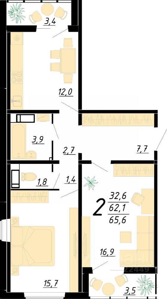 Продаётся 2-комнатная квартира в строящемся доме (Позиция 7), срок сдачи: I-кв. 2026, общей площадью 65.6 кв.м., на 14 этаже. Новый жилок комплекс "Яблоневые сады" от группы компаний "Домостроительный комбинат" расположен по адресу: г. Воронеж, по ул. Загоровского.