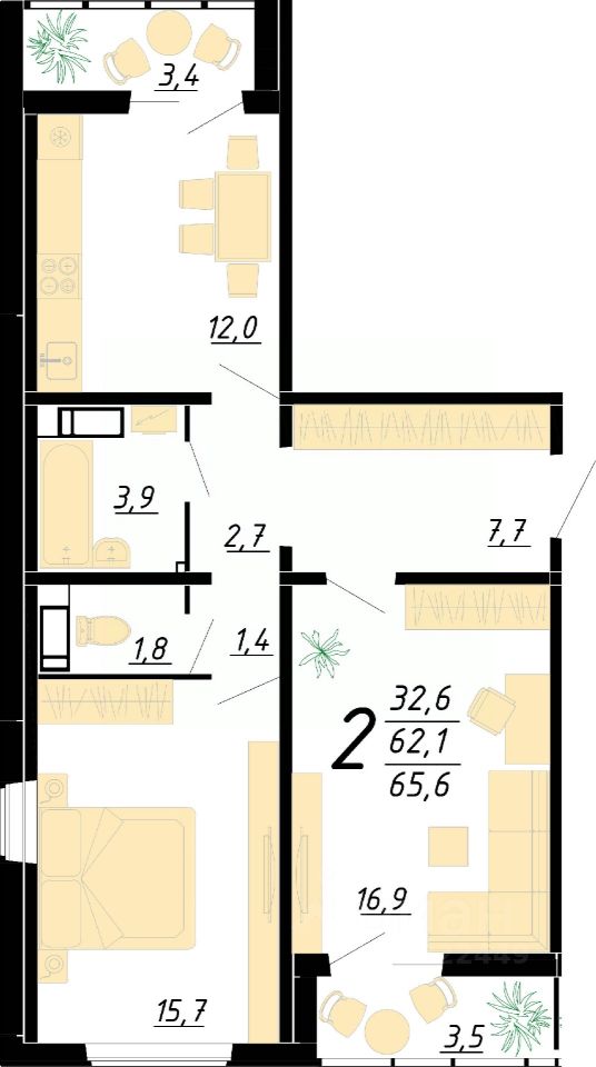 Продаётся 2-комнатная квартира в строящемся доме (Позиция 7), срок сдачи: I-кв. 2026, общей площадью 65.6 кв.м., на 10 этаже. Новый жилок комплекс "Яблоневые сады" от группы компаний "Домостроительный комбинат" расположен по адресу: г. Воронеж, по ул. Загоровского.