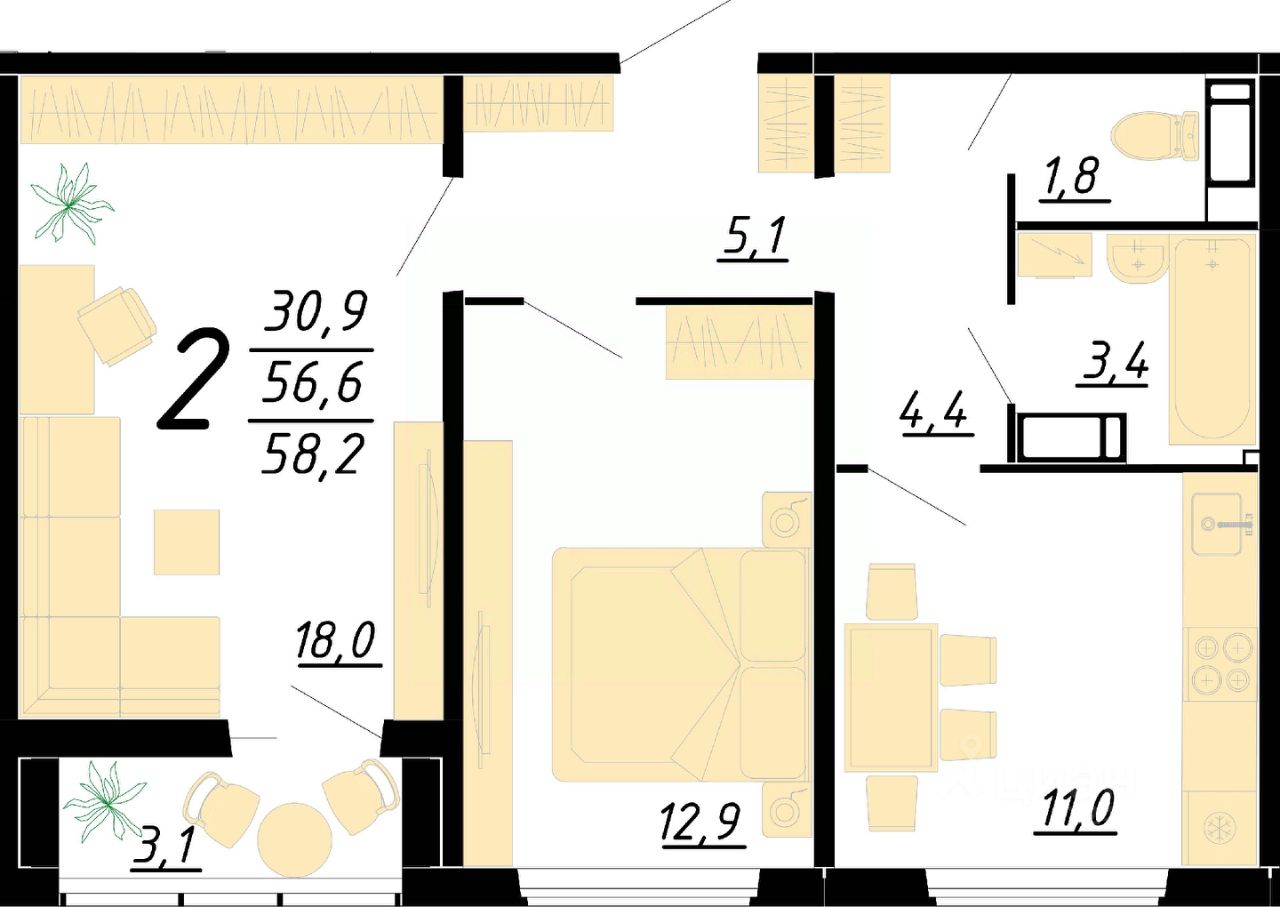 Продаётся 2-комнатная квартира в строящемся доме (Позиция 7), срок сдачи: I-кв. 2026, общей площадью 58.2 кв.м., на 2 этаже. Новый жилок комплекс "Яблоневые сады" от группы компаний "Домостроительный комбинат" расположен по адресу: г. Воронеж, по ул. Загоровского.