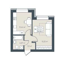 Продаётся 1-комнатная квартира в строящемся доме (Дом 3), срок сдачи: I-кв. 2027, общей площадью 34.26 кв.м., на 2 этаже. Новый жилой комплекс комфорт-класса "Ботаника Парк" от застройщика "БМ-Групп" в городе Павловск.