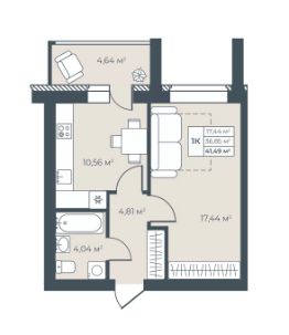 Продаётся 1-комнатная квартира в строящемся доме (Дом 3), срок сдачи: I-кв. 2027, общей площадью 41.49 кв.м., на 5 этаже. Новый жилой комплекс комфорт-класса "Ботаника Парк" от застройщика "БМ-Групп" в городе Павловск.