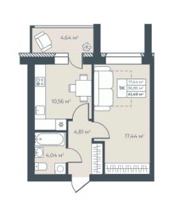 Продаётся 1-комнатная квартира в строящемся доме (Дом 3), срок сдачи: I-кв. 2027, общей площадью 41.49 кв.м., на 2 этаже. Новый жилой комплекс комфорт-класса "Ботаника Парк" от застройщика "БМ-Групп" в городе Павловск.
