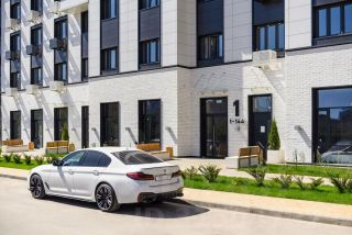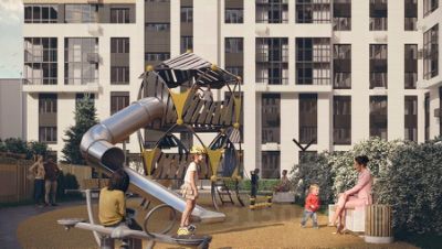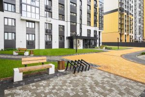 - Ландшафтное озеленение, стильные входные группы, современные игровые комплексы в экостиле, велопарковки на территории