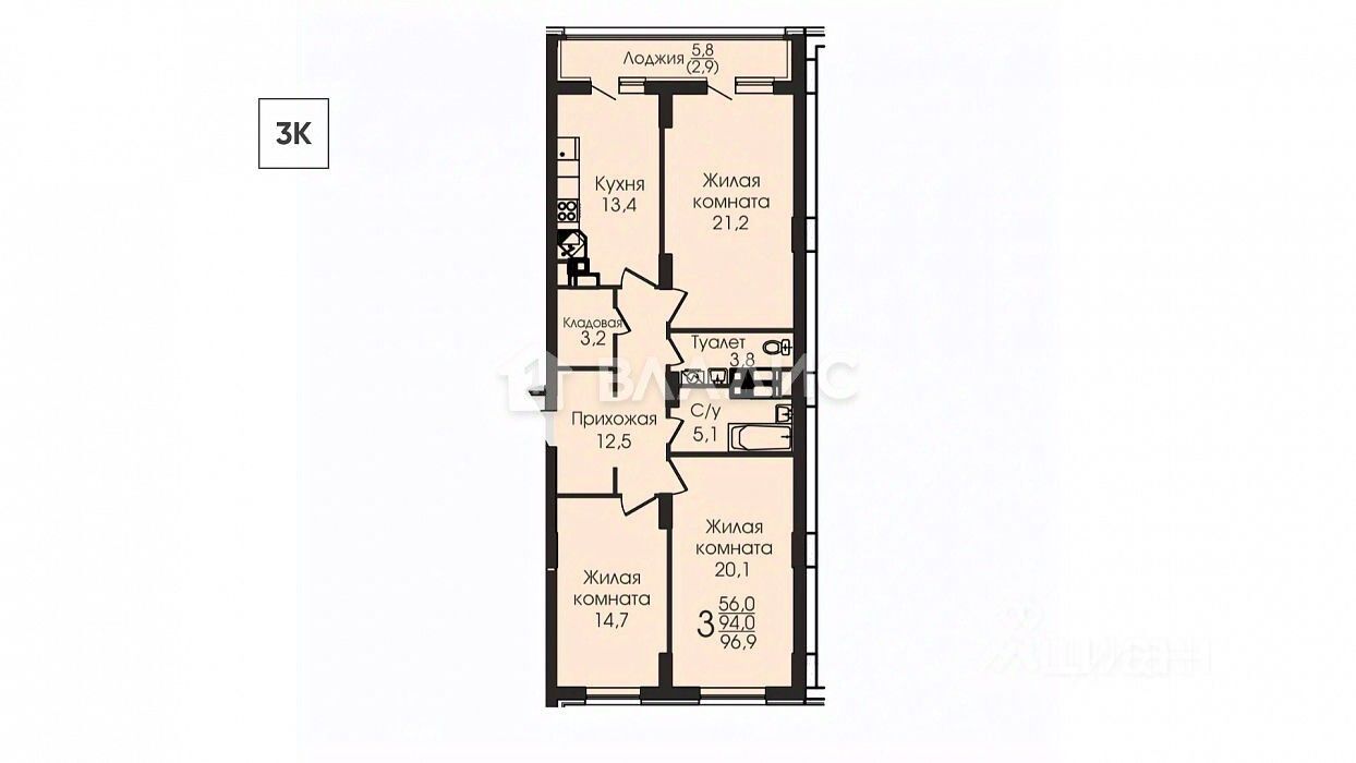 квартиры 1К, 2К, 3К и европланировки
