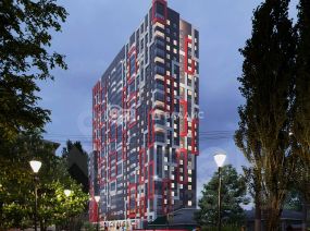 Дом красивый и заметный внешне. Архитектурная выразительность здания достигается ритмичным рисунком контрастных декоративных элементов с гармоничным сочетанием коричневого, красного и бежевого цветов.