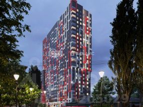 Дом красивый и заметный внешне. Архитектурная выразительность здания достигается ритмичным рисунком контрастных декоративных элементов с гармоничным сочетанием коричневого, красного и бежевого цветов.