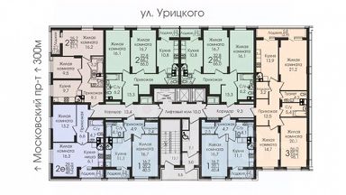 25-этажный многоквартирный 2-х секционный жилой дом расположен на пересечении улиц Урицкого и Свердлова.
