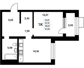 Продаётся 1-комнатная квартира в сданном доме (Чуева, 7 (2 этап) ), срок сдачи: III-кв. 2025, общей площадью 49.06 кв.м., на 6 этаже. Новый жилой комплекс "Z-town" от Специализированного застройщика "Новый Код" расположен на набережной Чуева в г. Воронеж.