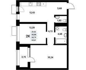 Продаётся 2-комнатная квартира в сданном доме (Чуева, 7 (2 этап) ), срок сдачи: III-кв. 2025, общей площадью 62.74 кв.м., на 6 этаже. Новый жилой комплекс "Z-town" от Специализированного застройщика "Новый Код" расположен на набережной Чуева в г. Воронеж.