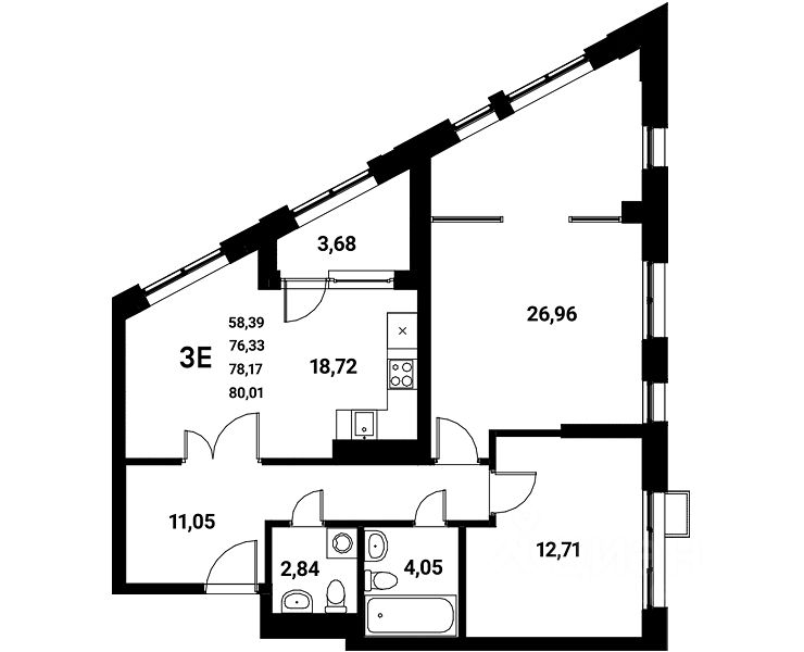 Продаётся 3-комнатная квартира в сданном доме (Чуева, 7 (1 этап) ), срок сдачи: II-кв. 2024, общей площадью 78.17 кв.м., на 3 этаже. Новый жилой комплекс "Z-town" от Специализированного застройщика "Новый Код" расположен на набережной Чуева в г. Воронеж.