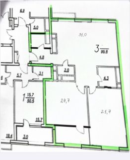 - гостиная 31 кв.м, две спальни 24,7 кв.м, 21,7кв.м