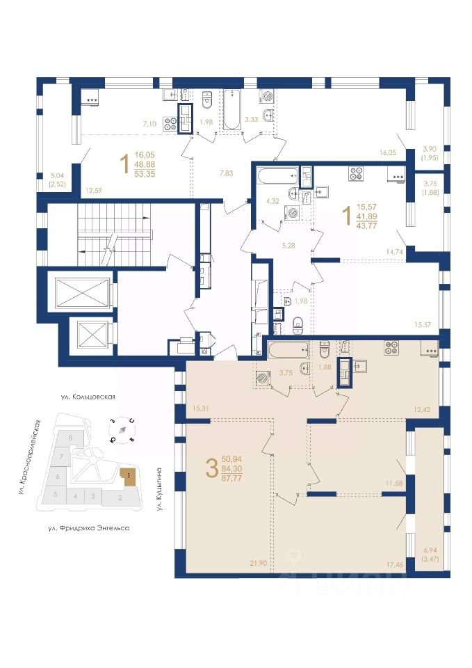 Строительная компания "ВЫБОР" предлагает купить трёхкомнатную квартиру в "Дом на Фридриха Энгельса" в Воронеже.