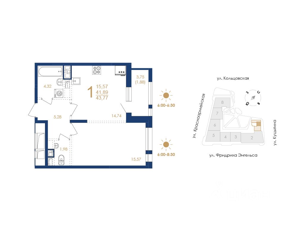 Строительная компания "ВЫБОР" предлагает купить однокомнатную квартиру в "Дом на Фридриха Энгельса" в Воронеже.