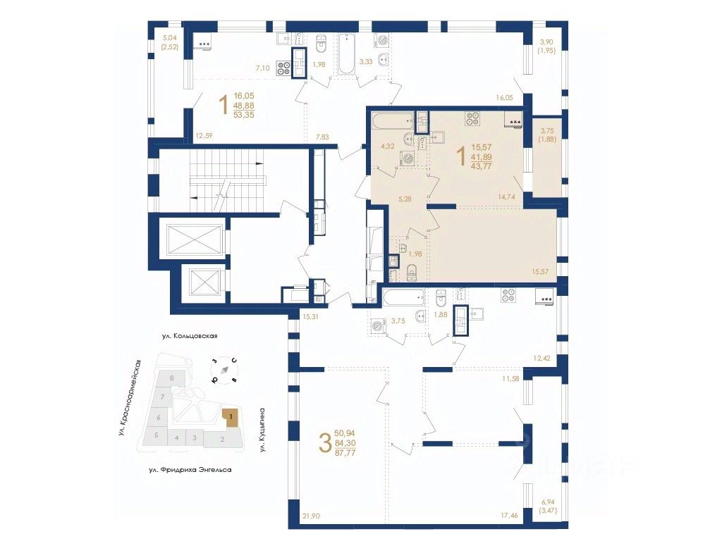 - Площадь квартир: от 29,89 до 127,29 кв. м