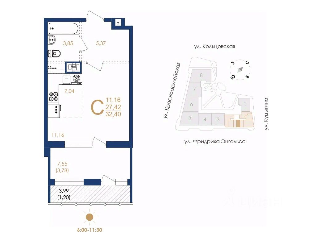 Строительная компания "ВЫБОР" предлагает купить однокомнатную квартиру в "Дом на Фридриха Энгельса" в Воронеже.