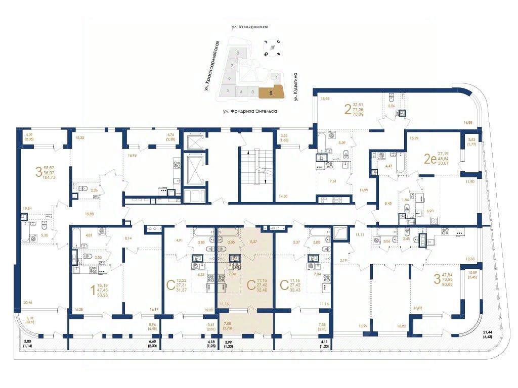 - Площадь квартир: от 29,89 до 127,29 кв. м