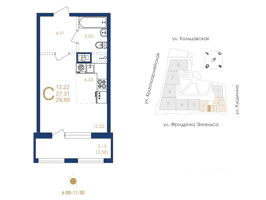 Строительная компания "ВЫБОР" предлагает купить однокомнатную квартиру в "Дом на Фридриха Энгельса" в Воронеже.
