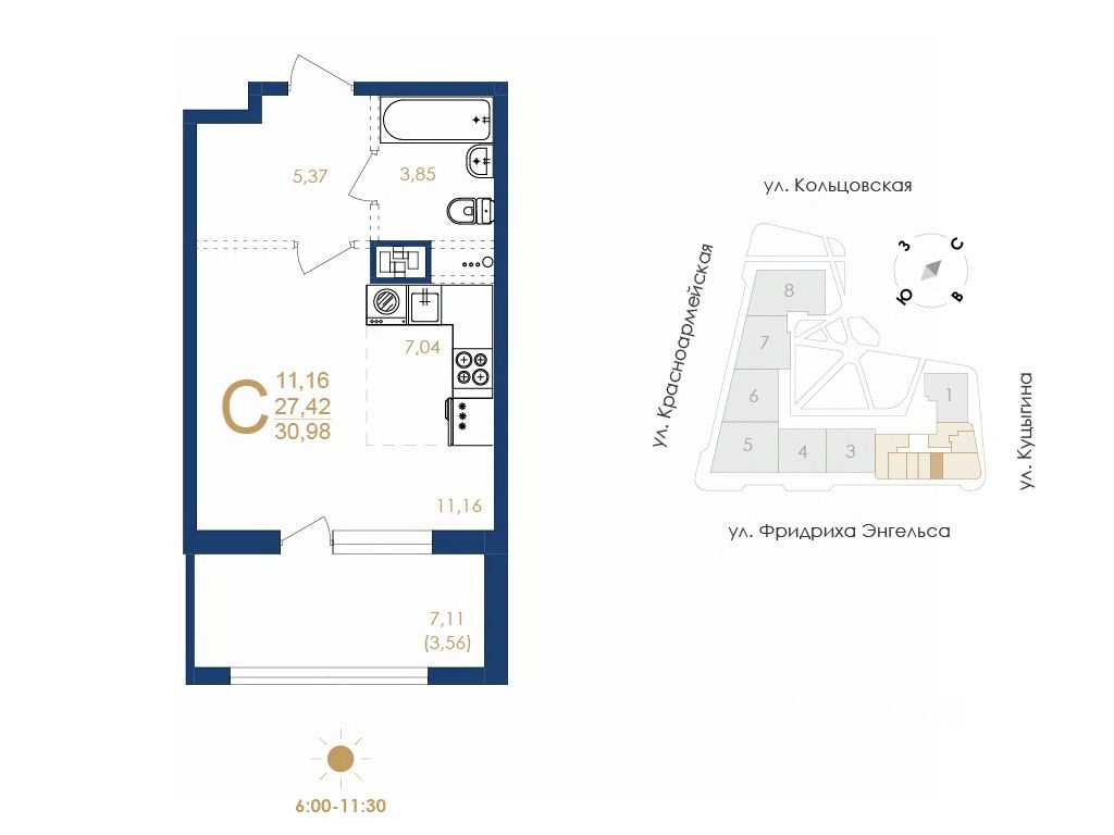 Строительная компания "ВЫБОР" предлагает купить однокомнатную квартиру в "Дом на Фридриха Энгельса" в Воронеже.