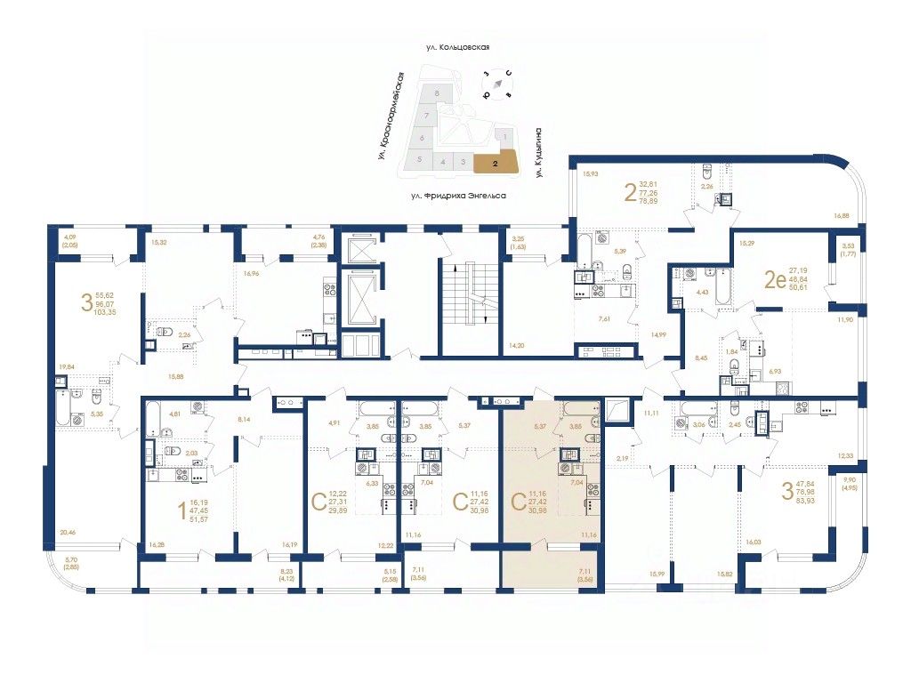 - Площадь квартир: от 29,89 до 127,29 кв. м