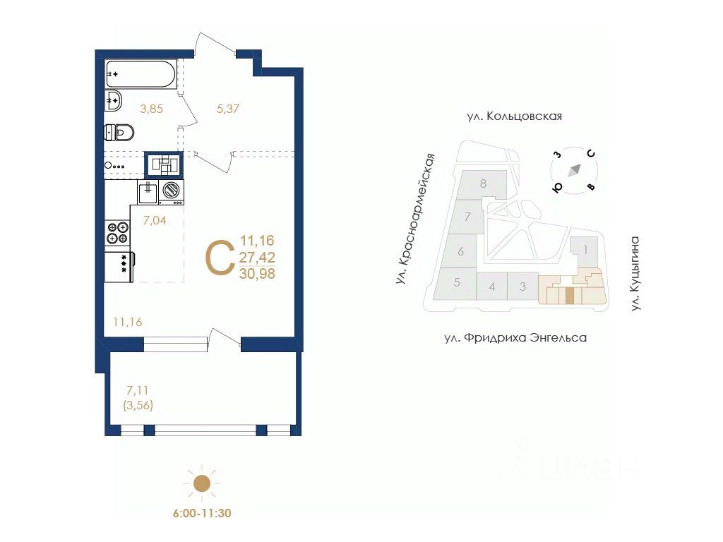 "Дом на Фридриха Энгельса" престижная локация с исключительной инфраструктурой. Особая атмосфера исторического центра. В жилом доме предусмотрено 8 секций, 309 эксклюзивных квартир по технологии монолитного домостроения - Переменная этажность: 6 17 - Площадь квартир: от 29,89 до 127,29 кв. м - Площадь террас: от 2,24 до 99,34 кв. м - Высота потолков в квартирах: 3,1 м - Свободные планировки, евроформат - Эксклюзивные решения (мастер-спальня с собственным выходом на террасу, ванная комната с видом на город) - Авторская архитектура - Концептуальное благоустройство, архитектурная подсветка - Премиальное лобби - Дизайнерские бесшумные лифты Meteor - Закрытая охраняемая территория - Высокий уровень безопасности, сервиса и приватности - Подземный 2-х уровневый паркинг (270 машино-мест) - Электрические зарядки для автомобилей - Кладовые - Ритейл на 1 этажах Трейд-ин. Действующие ипотечные ставки и акции уточняйте в офисе продаж застройщика. Услуга собственного менеджера по ипотечному кредитованию - удобная опция для клиентов компании. Специалисты обеспечат вам комфортные условия получения кредита и будут рядом на каждом этапе, возьмут на себя все взаимодействие с банком. Квартира от застройщика! Строительная компания "ВЫБОР" предлагает купить однокомнатную квартиру в "Дом на Фридриха Энгельса" в Воронеже. Успей приобрести квартиру по выгодной цене! Строительная компания "ВЫБОР" — один из ведущих застройщиков в Центрально-Черноземном регионе. Квартиры в новостройках от застройщика.