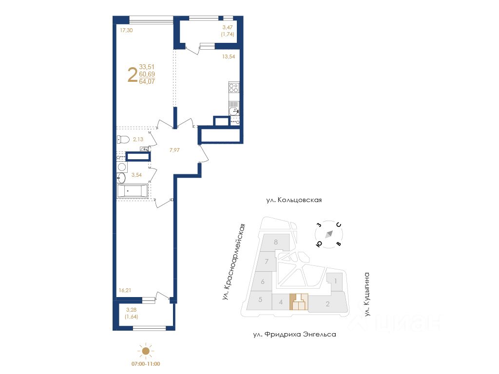 "Дом на Фридриха Энгельса" престижная локация с исключительной инфраструктурой. Особая атмосфера исторического центра. В жилом доме предусмотрено 8 секций, 309 эксклюзивных квартир по технологии монолитного домостроения - Переменная этажность: 6 17 - Площадь квартир: от 29,89 до 127,29 кв. м - Площадь террас: от 2,24 до 99,34 кв. м - Высота потолков в квартирах: 3,1 м - Свободные планировки, евроформат - Эксклюзивные решения (мастер-спальня с собственным выходом на террасу, ванная комната с видом на город) - Авторская архитектура - Концептуальное благоустройство, архитектурная подсветка - Премиальное лобби - Дизайнерские бесшумные лифты Meteor - Закрытая охраняемая территория - Высокий уровень безопасности, сервиса и приватности - Подземный 2-х уровневый паркинг (270 машино-мест) - Электрические зарядки для автомобилей - Кладовые - Ритейл на 1 этажах Трейд-ин. Действующие ипотечные ставки и акции уточняйте в офисе продаж застройщика. Услуга собственного менеджера по ипотечному кредитованию - удобная опция для клиентов компании. Специалисты обеспечат вам комфортные условия получения кредита и будут рядом на каждом этапе, возьмут на себя все взаимодействие с банком. Квартира от застройщика! Строительная компания "ВЫБОР" предлагает купить двухкомнатную квартиру в "Дом на Фридриха Энгельса" в Воронеже. Успей приобрести квартиру по выгодной цене! Строительная компания "ВЫБОР" — один из ведущих застройщиков в Центрально-Черноземном регионе. Квартиры в новостройках от застройщика.