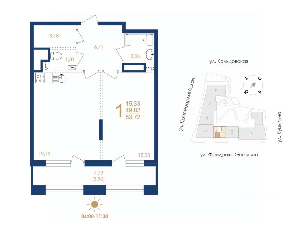 Строительная компания "ВЫБОР" предлагает купить однокомнатную квартиру в "Дом на Фридриха Энгельса" в Воронеже.