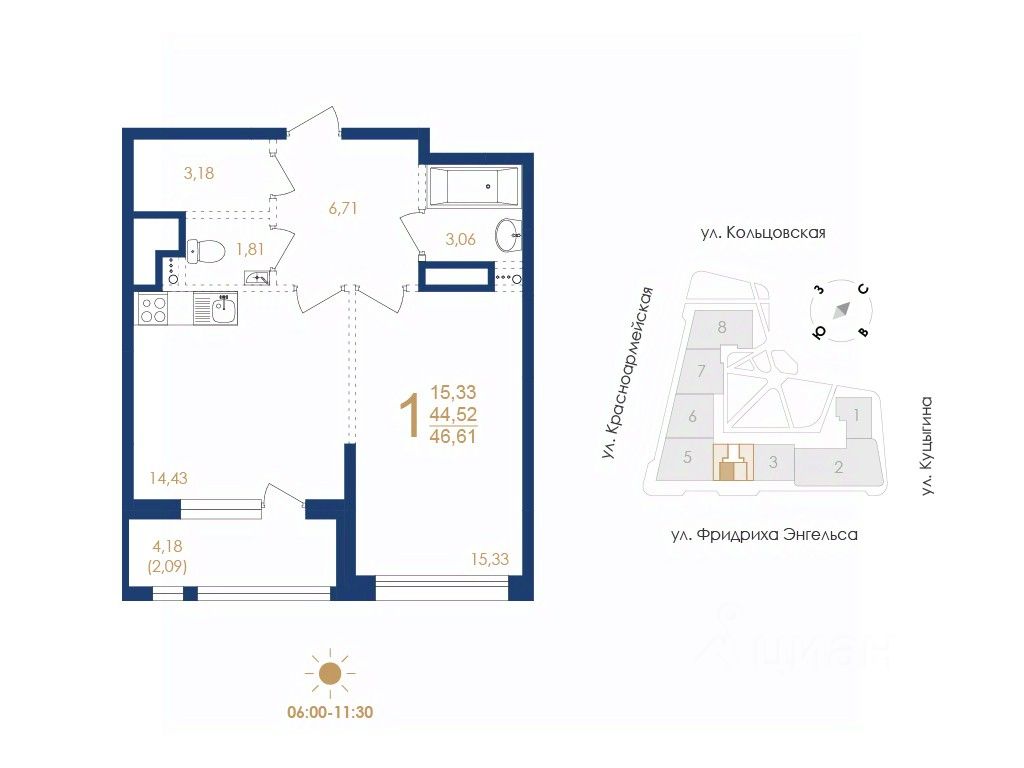 "Дом на Фридриха Энгельса" престижная локация с исключительной инфраструктурой. Особая атмосфера исторического центра. В жилом доме предусмотрено 8 секций, 309 эксклюзивных квартир по технологии монолитного домостроения - Переменная этажность: 6 17 - Площадь квартир: от 29,89 до 127,29 кв. м - Площадь террас: от 2,24 до 99,34 кв. м - Высота потолков в квартирах: 3,1 м - Свободные планировки, евроформат - Эксклюзивные решения (мастер-спальня с собственным выходом на террасу, ванная комната с видом на город) - Авторская архитектура - Концептуальное благоустройство, архитектурная подсветка - Премиальное лобби - Дизайнерские бесшумные лифты Meteor - Закрытая охраняемая территория - Высокий уровень безопасности, сервиса и приватности - Подземный 2-х уровневый паркинг (270 машино-мест) - Электрические зарядки для автомобилей - Кладовые - Ритейл на 1 этажах Трейд-ин. Действующие ипотечные ставки и акции уточняйте в офисе продаж застройщика. Услуга собственного менеджера по ипотечному кредитованию - удобная опция для клиентов компании. Специалисты обеспечат вам комфортные условия получения кредита и будут рядом на каждом этапе, возьмут на себя все взаимодействие с банком. Квартира от застройщика! Строительная компания "ВЫБОР" предлагает купить однокомнатную квартиру в "Дом на Фридриха Энгельса" в Воронеже. Успей приобрести квартиру по выгодной цене! Строительная компания "ВЫБОР" — один из ведущих застройщиков в Центрально-Черноземном регионе. Квартиры в новостройках от застройщика.