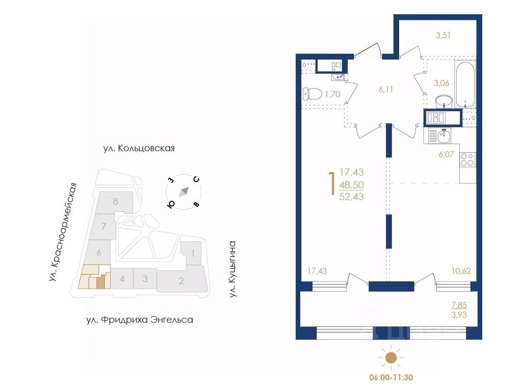 Строительная компания "ВЫБОР" предлагает купить однокомнатную квартиру в "Дом на Фридриха Энгельса" в Воронеже.