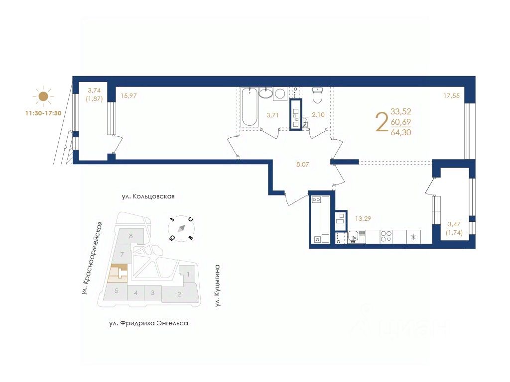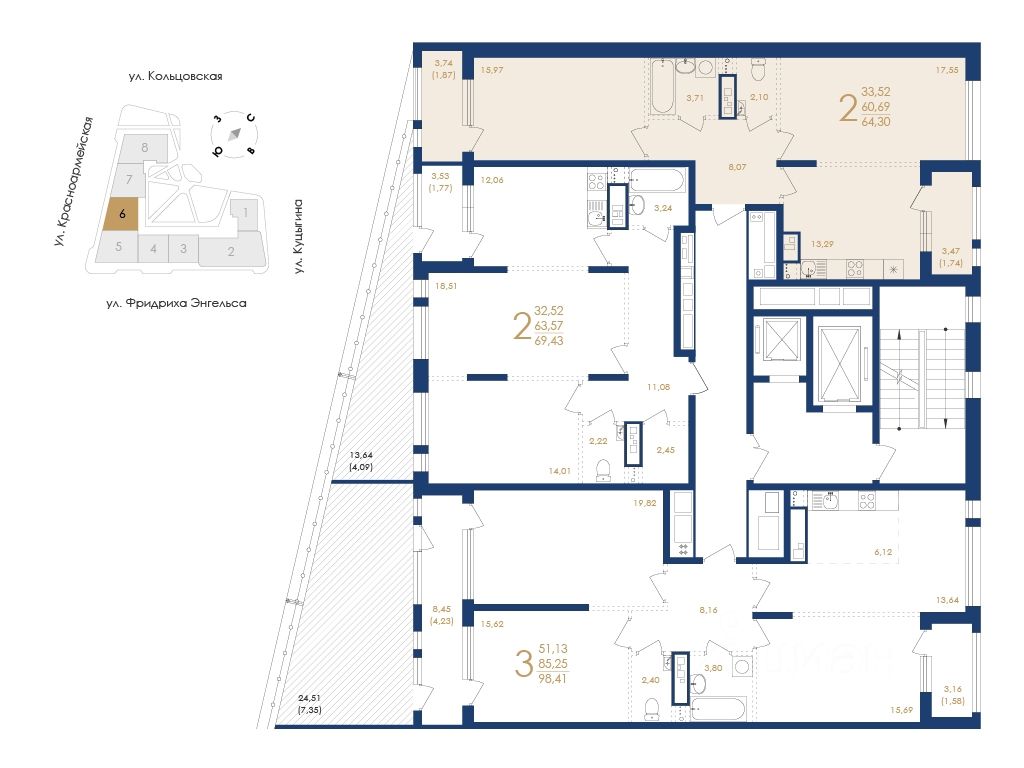 "Дом на Фридриха Энгельса" престижная локация с исключительной инфраструктурой. Особая атмосфера исторического центра. В жилом доме предусмотрено 8 секций, 309 эксклюзивных квартир по технологии монолитного домостроения - Переменная этажность: 6 17 - Площадь квартир: от 29,89 до 127,29 кв. м - Площадь террас: от 2,24 до 99,34 кв. м - Высота потолков в квартирах: 3,1 м - Свободные планировки, евроформат - Эксклюзивные решения (мастер-спальня с собственным выходом на террасу, ванная комната с видом на город) - Авторская архитектура - Концептуальное благоустройство, архитектурная подсветка - Премиальное лобби - Дизайнерские бесшумные лифты Meteor - Закрытая охраняемая территория - Высокий уровень безопасности, сервиса и приватности - Подземный 2-х уровневый паркинг (270 машино-мест) - Электрические зарядки для автомобилей - Кладовые - Ритейл на 1 этажах Трейд-ин. Действующие ипотечные ставки и акции уточняйте в офисе продаж застройщика. Услуга собственного менеджера по ипотечному кредитованию - удобная опция для клиентов компании. Специалисты обеспечат вам комфортные условия получения кредита и будут рядом на каждом этапе, возьмут на себя все взаимодействие с банком. Квартира от застройщика! Строительная компания "ВЫБОР" предлагает купить двухкомнатную квартиру в "Дом на Фридриха Энгельса" в Воронеже. Успей приобрести квартиру по выгодной цене! Строительная компания "ВЫБОР" — один из ведущих застройщиков в Центрально-Черноземном регионе. Квартиры в новостройках от застройщика.