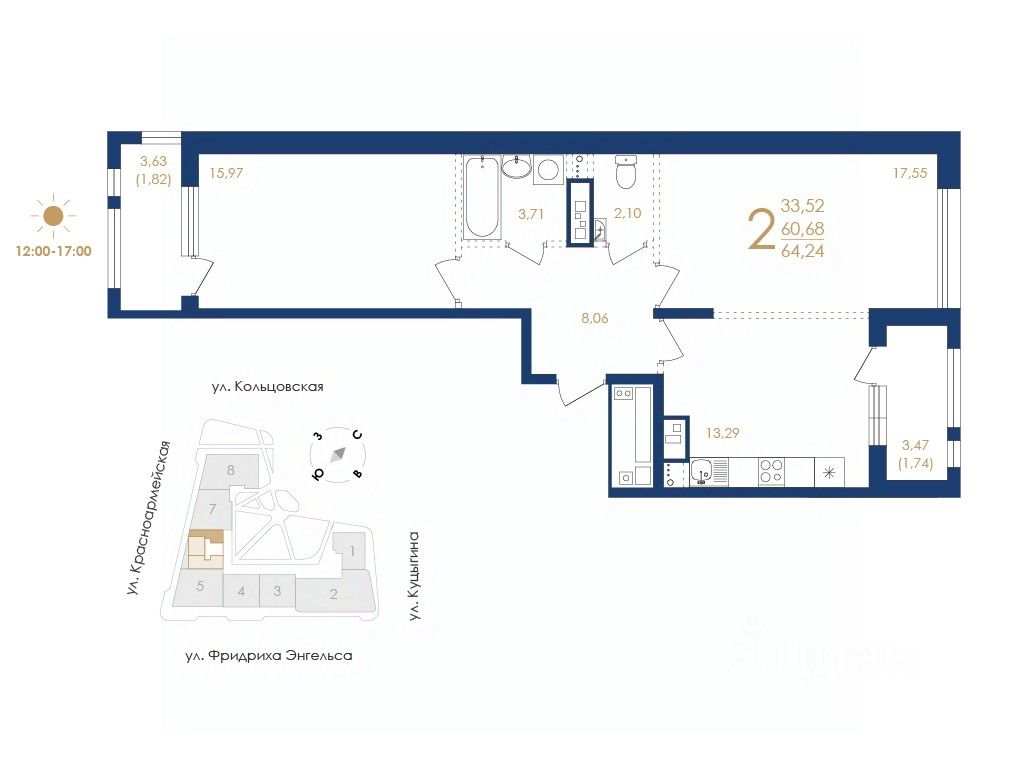 "Дом на Фридриха Энгельса" престижная локация с исключительной инфраструктурой. Особая атмосфера исторического центра. В жилом доме предусмотрено 8 секций, 309 эксклюзивных квартир по технологии монолитного домостроения - Переменная этажность: 6 17 - Площадь квартир: от 29,89 до 127,29 кв. м - Площадь террас: от 2,24 до 99,34 кв. м - Высота потолков в квартирах: 3,1 м - Свободные планировки, евроформат - Эксклюзивные решения (мастер-спальня с собственным выходом на террасу, ванная комната с видом на город) - Авторская архитектура - Концептуальное благоустройство, архитектурная подсветка - Премиальное лобби - Дизайнерские бесшумные лифты Meteor - Закрытая охраняемая территория - Высокий уровень безопасности, сервиса и приватности - Подземный 2-х уровневый паркинг (270 машино-мест) - Электрические зарядки для автомобилей - Кладовые - Ритейл на 1 этажах Трейд-ин. Действующие ипотечные ставки и акции уточняйте в офисе продаж застройщика. Услуга собственного менеджера по ипотечному кредитованию - удобная опция для клиентов компании. Специалисты обеспечат вам комфортные условия получения кредита и будут рядом на каждом этапе, возьмут на себя все взаимодействие с банком. Квартира от застройщика! Строительная компания "ВЫБОР" предлагает купить двухкомнатную квартиру в "Дом на Фридриха Энгельса" в Воронеже. Успей приобрести квартиру по выгодной цене! Строительная компания "ВЫБОР" — один из ведущих застройщиков в Центрально-Черноземном регионе. Квартиры в новостройках от застройщика.