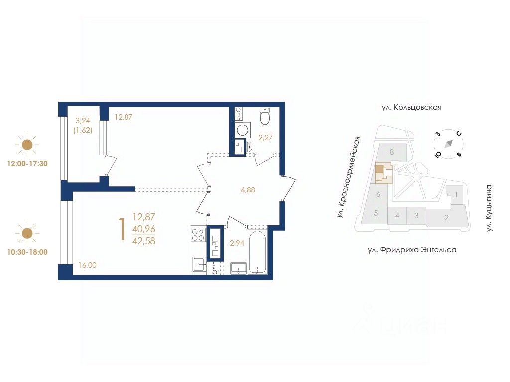 Строительная компания "ВЫБОР" предлагает купить однокомнатную квартиру в "Дом на Фридриха Энгельса" в Воронеже.