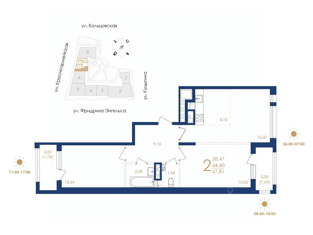 Строительная компания "ВЫБОР" предлагает купить двухкомнатную квартиру в "Дом на Фридриха Энгельса" в Воронеже.